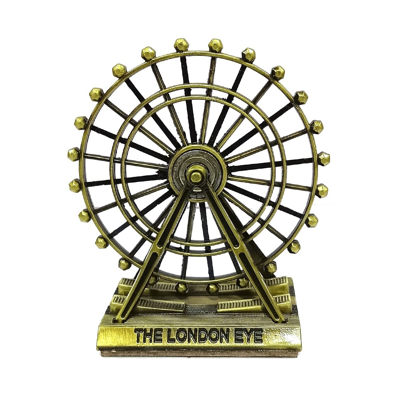 Bring home the charm of London with this beautifully crafted London Eye miniature souvenir. Designed with intricate detailing and a golden antique finish, this ferris wheel model makes a perfect collectible, desk accessory, or home décor piece. A great gift for travel lovers and London enthusiasts, this showpiece adds a touch of elegance and sophistication to any space.